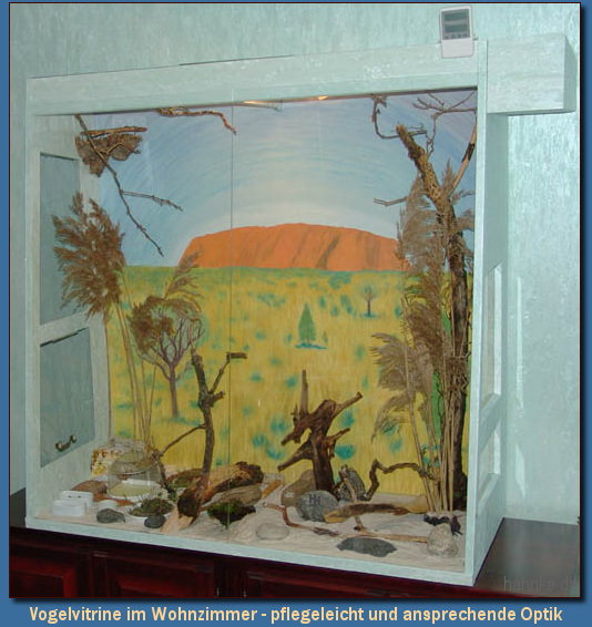 Vogelvitrine 3.3 für ein Wohnzimmer tauglicher Vogelkäfig
