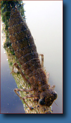 Unterm Eis hat diese Großlibellenlarve ihre volle Größe fast erreicht und wartet wenig aktiv auf den Frühling, um als die schöne Blaugrüne Mosaikjungfer aus dem Wasser zu steigen.