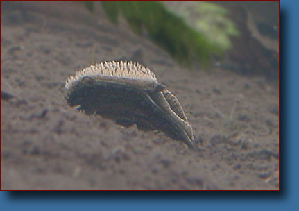 hat sich senkrecht vergraben und läßt nur ihre bewimperte Mundöffnung